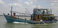The next day was gray and threatening. We motored up towards the next harbour at Tumpat. As we approached it the wind intensified and the idea of risking entry into the harbour which was very shallow (three metres on the chart) was not appealing.