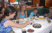 We met “Dave the Cat” and they were able to supply four children for the birthday party, their own kids Shannon and Simon and two visitors Craig and Lisa. The bay was crowded with yachts and the beach was teeming with tourists, with whole beach lined with umbrellas and sun lounges for rent. Courtney wasn’t well the day of her birthday so a party was held over til the next day and at the next beach up the coast, Kata Beach. Just as pretty with fewer boats anchored but just as many tourists on the beach.