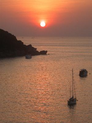 We left Patong beach early for the 54 mile run north-west to ‘the Similans’. These islands are forty miles off the Thai coast and run north – south. The north-east wind blows hard most mornings and we left with a fully reefed main and quite a few turns on the headsail furler. For the first few hours we charged along at 7.5 to 8 knots, but as the day went on the wind died away and after a short effort with the spinnaker we motored the last twenty miles to Koh Miang, the first island with anchorage possibilities. A large pod of dolphins joined us for the last mile into Koh Miang – good stuff!