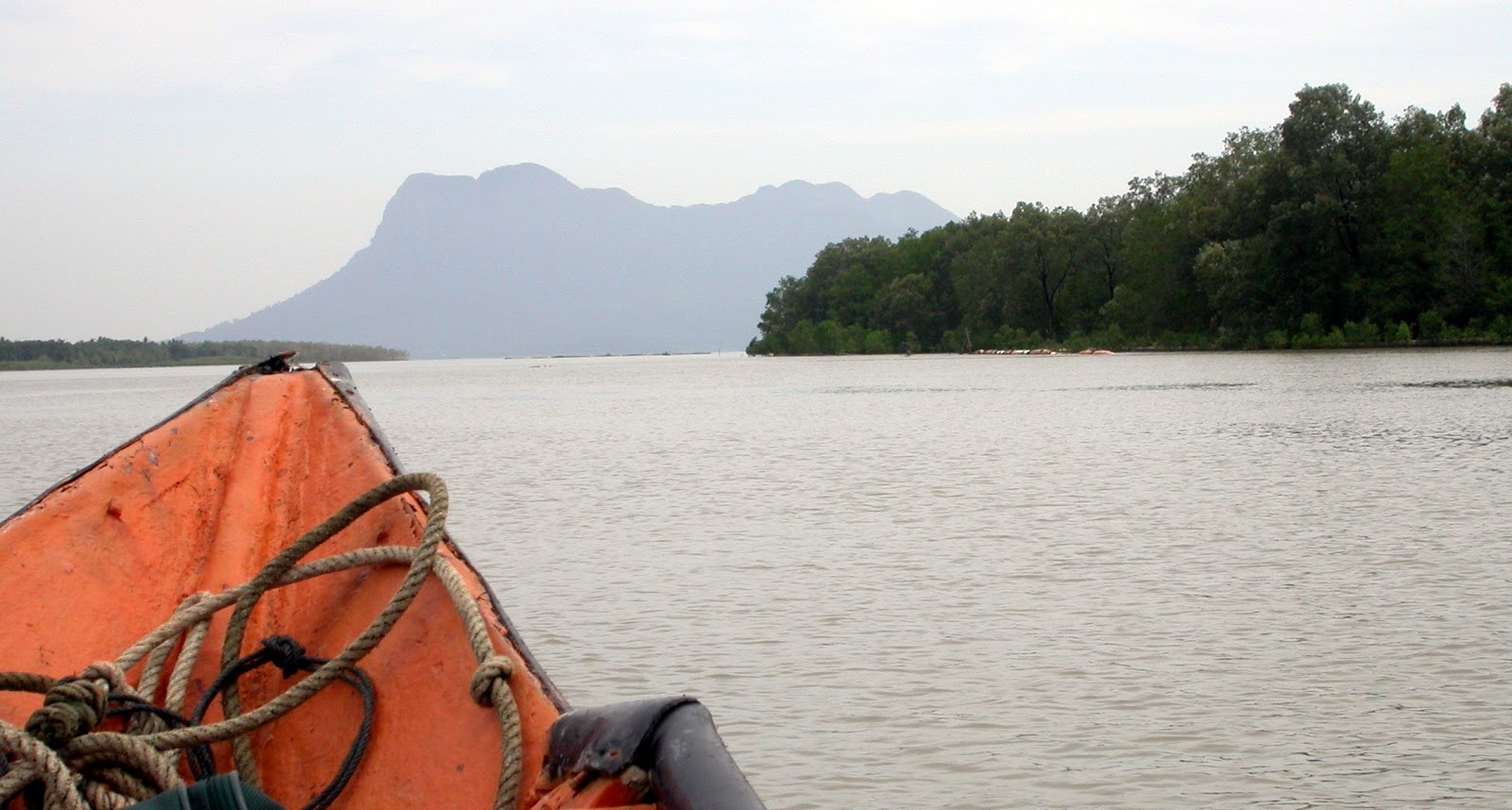 After the long house visit (Kuching – City & Longhouse Visit) we had a night back in Kuching before heading out for a three day stop in Bako National Park which is 45 minutes out of Kuching on a headland. After spending some much time in Thailand it is natural to compare the two countries – Malaysians drive at a much more relaxed pace and generally the ‘oh my god we’re gonna crash’ event is much less common. We caught a mini bus as the deal was only slightly more than the bus and no wait for the next bus. Safely delivered to a jetty we hopped on a long-tail style boat but with a quiet outboard. Long-tails in Thailand are very unique and culturally significant, but so bloody noisy! 15 minutes later we are wheeling our suitcases, backpacks and plastic bags along the path looking for the parks office. Sounds like an ordeal – 200metres dragging bags in the sun is! We booked a lodge which was sort of clean and sort of tidy and many of the lights worked – but nice to be in a detached house surrounded by forest with a nice view of Mt Santubong in the distance across the bay.