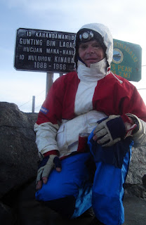 So after a short sleep, laying awake mostly to the noise of wind and rain, I got up at 2am and got ready to do the 3km climb to the summit at 4100 metres. The rain was a real worry and I decided if I got too cold in the first hour I would turn back. I had good warm clothes but had only sailing gloves with exposed fingers I knew that my hands were in for it – and of course a set of legs that hadn’t been well prepared for this ordeal.